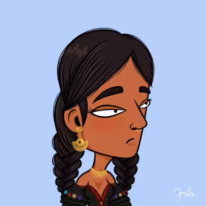 Collection Depressed Citizens Artist Juls Description ART. No team, no project, no future. Depressed Citizens is an urban & existential Art expression on Ordinals. In a parallel universe, "THEI" control us. DC unites against toxic society, encouraging critical thinking. 100% hand made collection that took Juls more than 6 months of daily work. Name Citizen#789 Origin Hispanic Gender Woman Necklace Pre-Columbian necklace Hat No Hat Mustache Beard No beard Glasses No Glasses Earrings Pre-Columbian Earrings Hair Style Double braids Clothes Traditional black flowery dress Tattoo No Tattoo Star Background Without stars