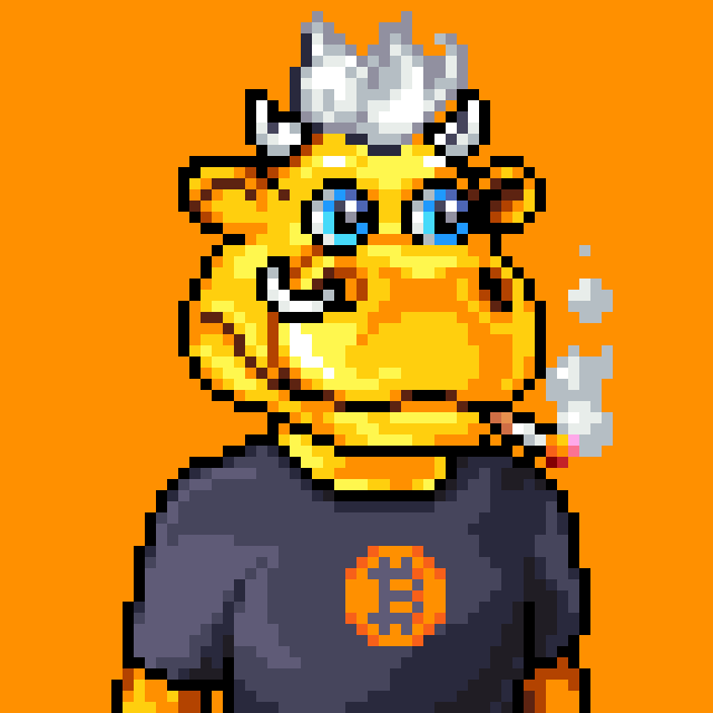 - 2100 pixel art Bulls ready for the bull market. 48 color palette. Only on Bitcoin.