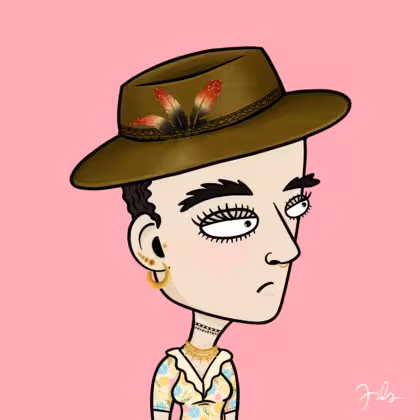 Collection Depressed Citizens Artist Juls Description ART. No team, no project, no future. Depressed Citizens is an urban & existential Art expression on Ordinals. In a parallel universe, "THEI" control us. DC unites against toxic society, encouraging critical thinking. 100% hand made collection that took Juls more than 6 months of daily work. Name Citizen#2270 Origin Caucasian non hispanic Gender Woman Necklace Pre-Columbian necklace Hat Fedora hat Mustache Beard No beard Glasses No Glasses Earrings Tragus star earring Hair Style Short curly with gel Clothes Spring flowers v-neck shirt Tattoo No Tattoo Star Background Without stars