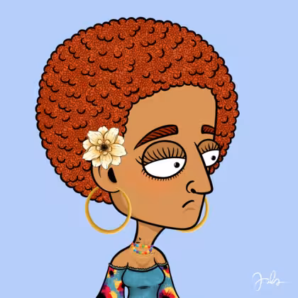 Collection Depressed Citizens Artist Juls Description ART. No team, no project, no future. Depressed Citizens is an urban & existential Art expression on Ordinals. In a parallel universe, "THEI" control us. DC unites against toxic society, encouraging critical thinking. 100% hand made collection that took Juls more than 6 months of daily work. Name Citizen#2338 Origin Hispanic Gender Woman Necklace Colorful layered necklace Hat No Hat Mustache Beard No beard Glasses No Glasses Earrings Beading hoops Hair Style Afro Clothes Abstract flowers blue blouse Tattoo Rose tattoo Star Background Without stars